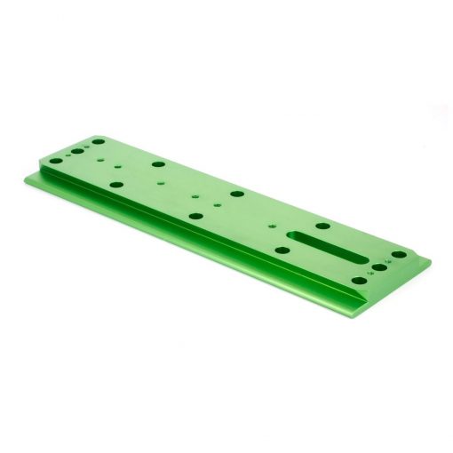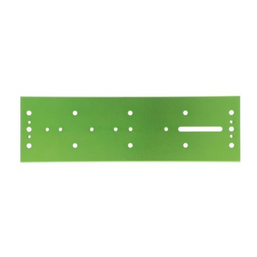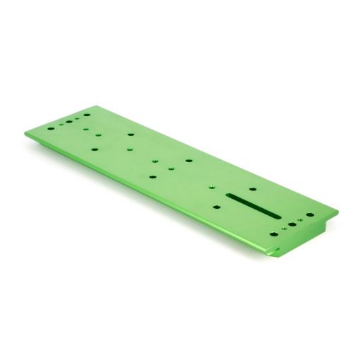 Con multitud de agujeros, permiten diferentes configuraciones a adaptar. Superficie superior plana. Sólida construcción en aluminio bajo CNC (máquina de control numérico) – Anodizado verde. Longitud: 335 mm Espesor: 17 mm