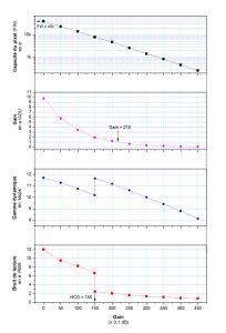 La cámara incorpora un dispositivo de alta ganancia de conversión (HCG) que puede reducir el ruido de reproducción con una ganancia alta y al mismo tiempo mantener el gran rango dinámico que se obtendría con una ganancia baja. Este modo HCG se activa automáticamente tan pronto como la ganancia alcanza 150. El ruido de reproducción cae a 2 e- mientras que el rango dinámico aumenta a 12 paradas.