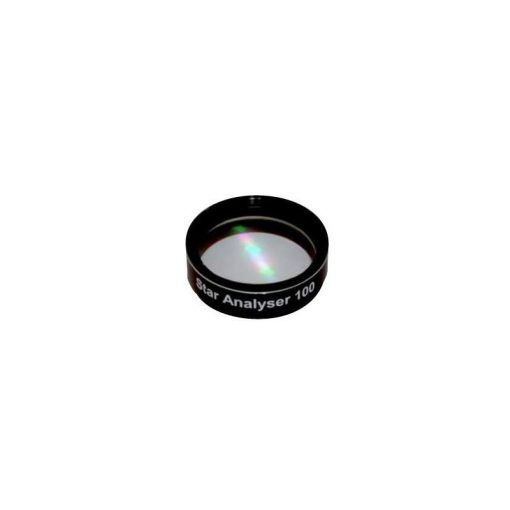 El Star Analyser 100 se atornilla como si fuera un filtro de 1,25» y es el artículo ideal para practicar la astrofotografía «low cost» con cámaras de vídeo y webcams que tan popular se ha hecho actualmente.