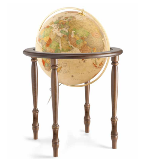 Globo terráqueo iluminado, de 50 cm de diámetro. Base en madera de haya. Cartografía de estilo antiguo.