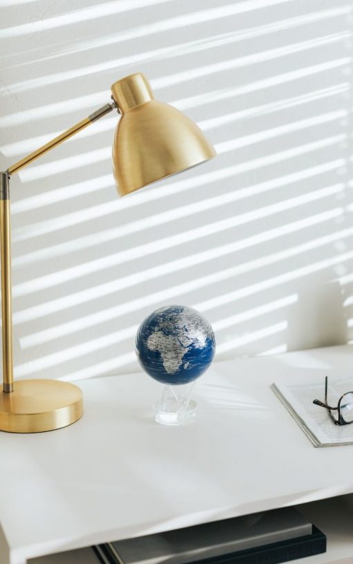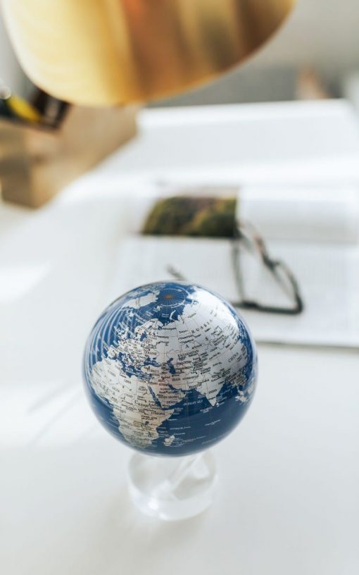 Globo terráqueo con cartografía política de 15,24 cm de diámetro y que gira con la luz diurna o artificial.