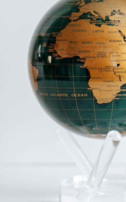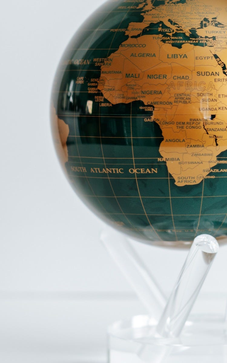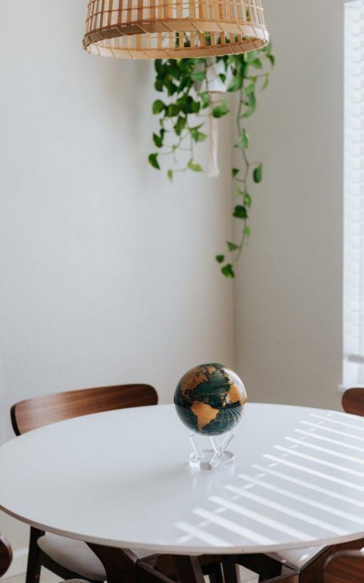 Globo terráqueo con cartografía política de 15,24 cm de diámetro y que gira con la luz diurna o artificial.
