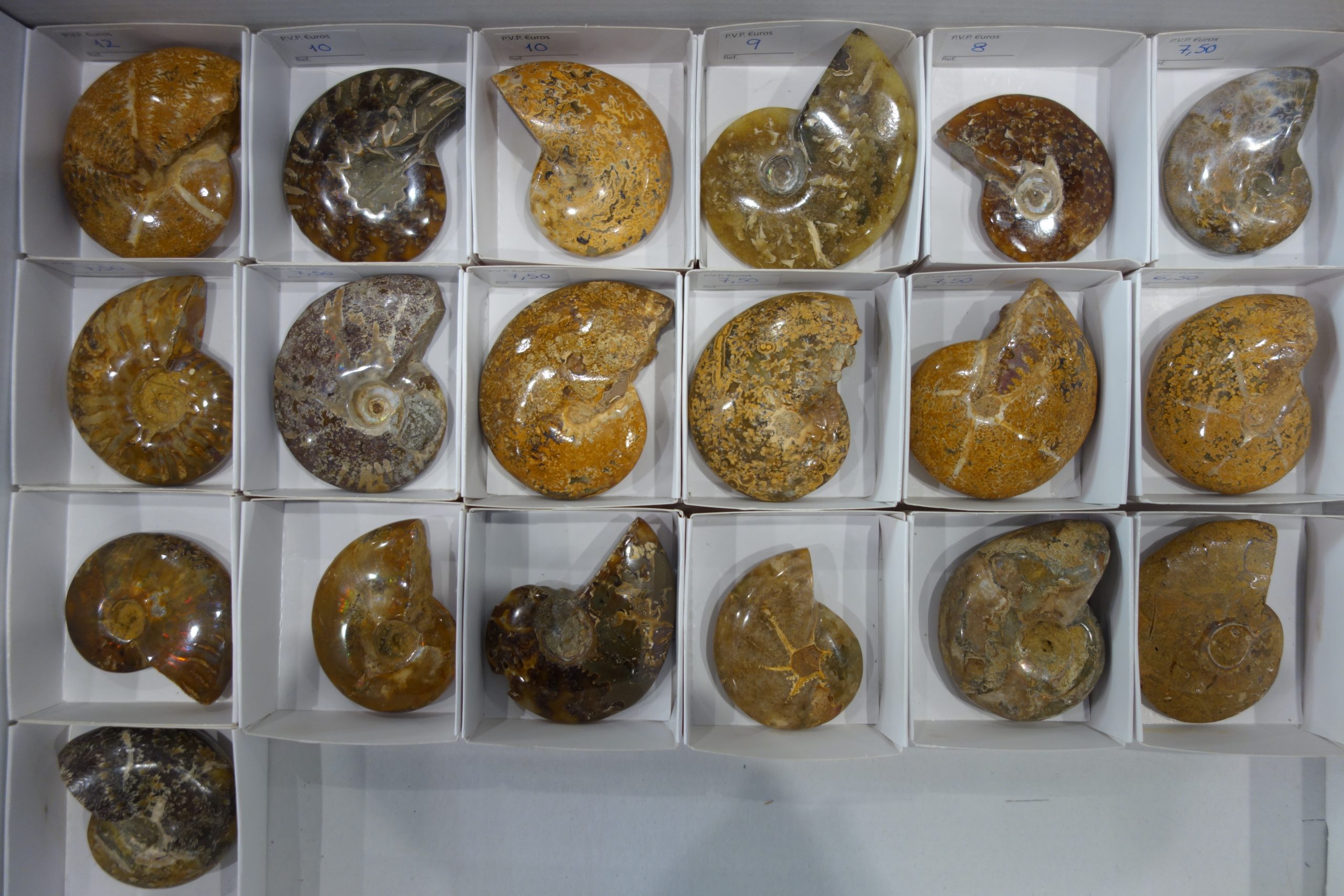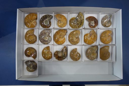 Lote Ammonite pulido 19 unidades en cajitas 6 x 6 cm