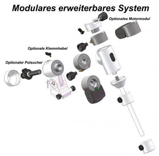 La montura AP-SM es la extensión de la montura AP. A diferencia de la montura AP, tiene un motor AR y está equipada con el control STAR BOOK ONE.