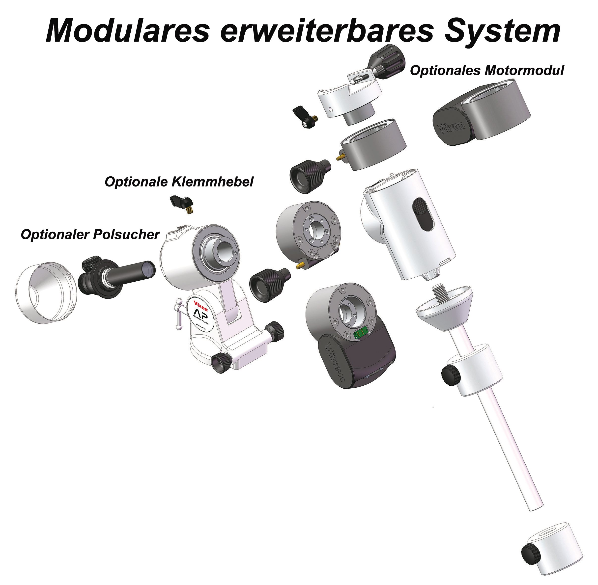 Opcionalmente se puede adquirir una gran selección de accesorios. La montura ADVANCED POLARIS es ideal para principiantes, así como para observadores expertos que quieren utilizar una montura de viaje ligera.