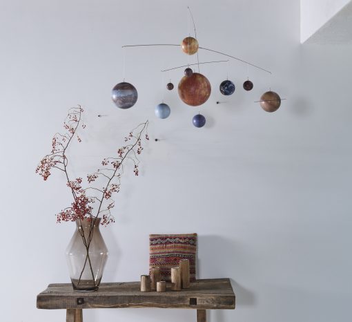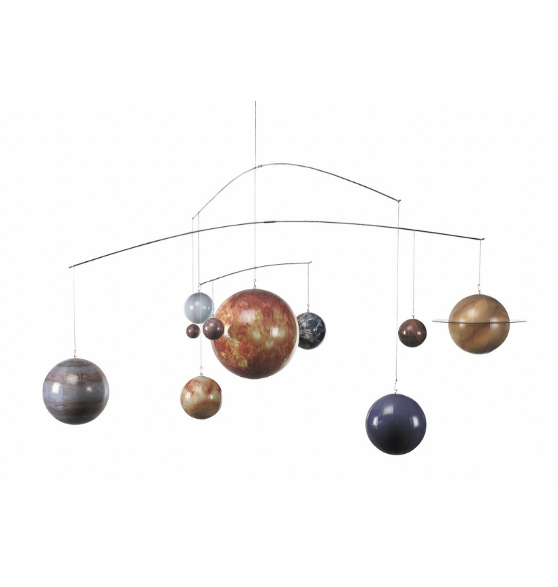 Móvil del Sistema Solar con todos los planetas (incluye el planeta enano Plutón) para colgarlo desde el techo de la habitación. Original y de buena calidad. Los globos no están iluminados.