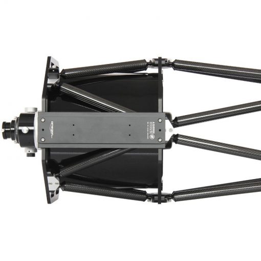 La mayoría de los telescopios profesionales son de tubo abierto. Pues bien, este telescopio también se beneficia de las ventajas asociadas a este diseño. Las rejillas de carbono son rígidas, ligeras y muy resistentes a los cambios de temperatura. De hecho, ese es otro de los motivos por los que su enfoque es tan estable. La renovación del aire es mejor en los tubos abiertos y evita que se genere un microclima en su interior.