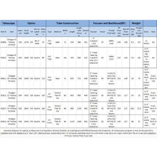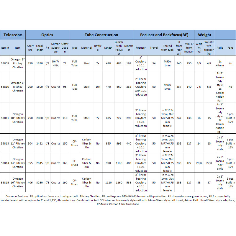 Los telescopio RC están equipados con espejos principal y secundario de tipo hiperbólico. No con espejos esféricos, como los sistemas Schmidt-Cassegrain. El diseño del RC está muy cuidado: el tubo óptico ofrece un campo visual más amplio y una aberración óptica considerablemente menor.