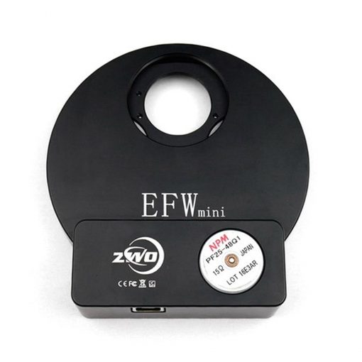 Su motor consume muy poca electricidad, lo que significa que puede alimentarse directamente por USB a través de su cámara. Esta rueda de filtros ZWO EFW Mini funciona con todo el software del mercado a través de un controlador ASCOM. Construcción de aluminio mecanizado CNC de alta calidad (máquina de control numérico), motor paso a paso NPM fabricado en Japón.