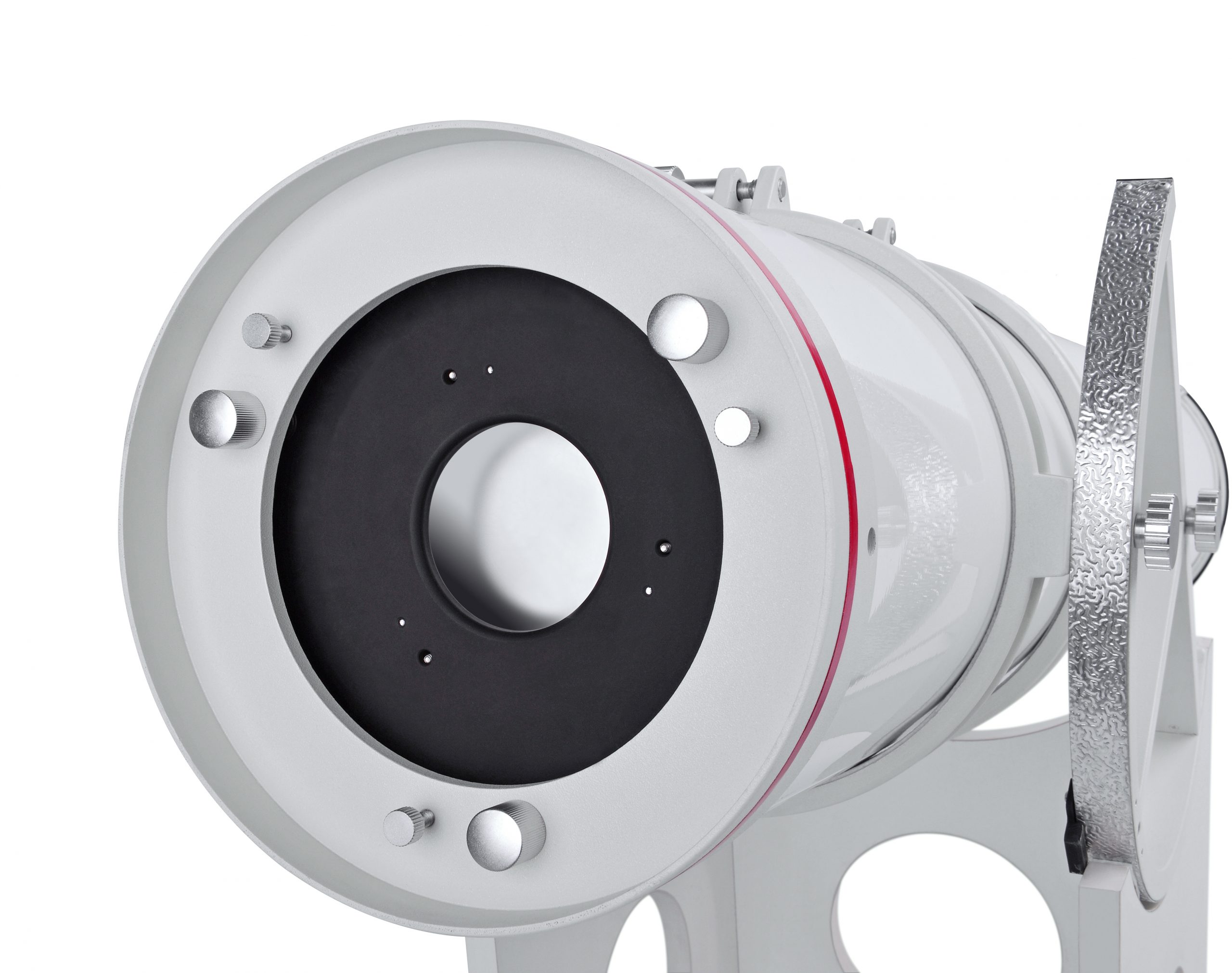 Esta es otra virtud de este versátil telescopio: usted puede quitar las ruedas de altura de los anillos del tubo, adjuntar unas colas de milano y utilizar el tubo óptico sobre una montura ecuatorial para astrofotografía – en cuestión de minutos. El enfoque maneja incluso pesadas cámaras inclinables y de desplazamiento libre. ¿Es usted muy exigente con la nitidez de su imagen? No hay problema – con el engranaje de reducción 10:1 opcional, conseguir imagenes nítidas es muy fácil. Si se tiene en cuenta, que el mecanismo de enfoque es la parte del telescopio que se utiliza con mayor frecuencia, usted reconocerá el salto cualitativo que el Hexafoc representa en comparación con otros telescopios dentro de este rango de precios.