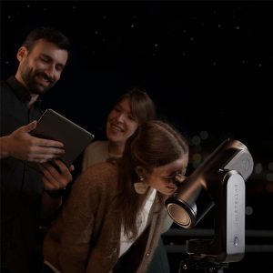 Uno de los inconvenientes de los telescopios «tradicionales» es su instalación (inicialización). ¡Odyssey Pro ofrece la solución más simple disponible! Después de conectar tu smartphone vía Wifi al Odyssey Pro, apuntarás a cualquier región del cielo utilizando el joystick virtual. Luego realiza un reconocimiento automático del campo puntiagudo comparándolo con sus 10 millones de estrellas en su base de datos. En unos segundos el dispositivo está configurado y equipado con seguimiento (compensación de la rotación de la Tierra), luego sólo hay que elegir entre su catálogo de más de 5.000 objetos celestes: un planeta, un cometa, una galaxia, una nebulosa o un cúmulo de estrellas. Ergonómicamente, el Odyssey Pro es tan compacto que cabe en una mochila de senderismo de tamaño mediano, lo que lo convierte en el compañero ideal para las tardes de observación improvisadas, incluso durante las vacaciones. Se incluye de serie un trípode, así como una máscara Bahtinov (en la funda antipolvo), una práctica herramienta para perfeccionar el enfoque (nitidez de las imágenes).