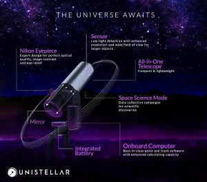 La tecnología digital y el desarrollo de aplicaciones para teléfonos inteligentes/tabletas están cambiando el mundo de la Astronomía desde hace varios años. Unistellar, una nueva empresa francesa, ha llevado esta filosofía más allá al convertir su telescopio en un concentrado de tecnologías patentadas únicas. Las gamas eVscope/eQuinox (Telescopios de Visión Mejorada) son la culminación de 5 años de investigación y desarrollo lanzados por 4 franceses para permitir a todos: principiantes en Astronomía o simplemente curiosos del cielo embarcarse en el descubrimiento del espacio y sus maravillas. .sin tener ningún conocimiento en esta área. A esta brillante familia se suman los telescopios Odyssey con varias innovaciones entre ellas la ausencia de colimación. Para aficionados o expertos, los telescopios Unistellar son instrumentos rápidos de configurar (además, por ejemplo, de su equipo actual).