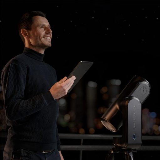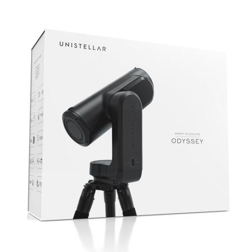 Uno de los inconvenientes de los telescopios «tradicionales» es su instalación (inicialización). ¡Odyssey ofrece la solución más sencilla disponible! Después de conectar tu smartphone vía Wifi al Odyssey, apuntarás a cualquier región del cielo utilizando el joystick virtual. Luego realiza un reconocimiento automático del campo comparándolo con sus 10 millones de estrellas en su base de datos. En unos segundos el dispositivo está configurado y equipado con seguimiento (compensación de la rotación de la Tierra), luego sólo hay que elegir entre su catálogo de más de 5.000 objetos celestes: un planeta, un cometa, una galaxia, una nebulosa o un cúmulo de estrellas. Ergonómicamente, el Odyssey es tan compacto que cabe en una mochila de senderismo de tamaño mediano, lo que lo convierte en el compañero ideal para las tardes de observación improvisadas, incluso durante las vacaciones. Se incluye de serie un trípode, así como una máscara Bahtinov (en la funda antipolvo), una práctica herramienta para perfeccionar el enfoque (nitidez de las imágenes).